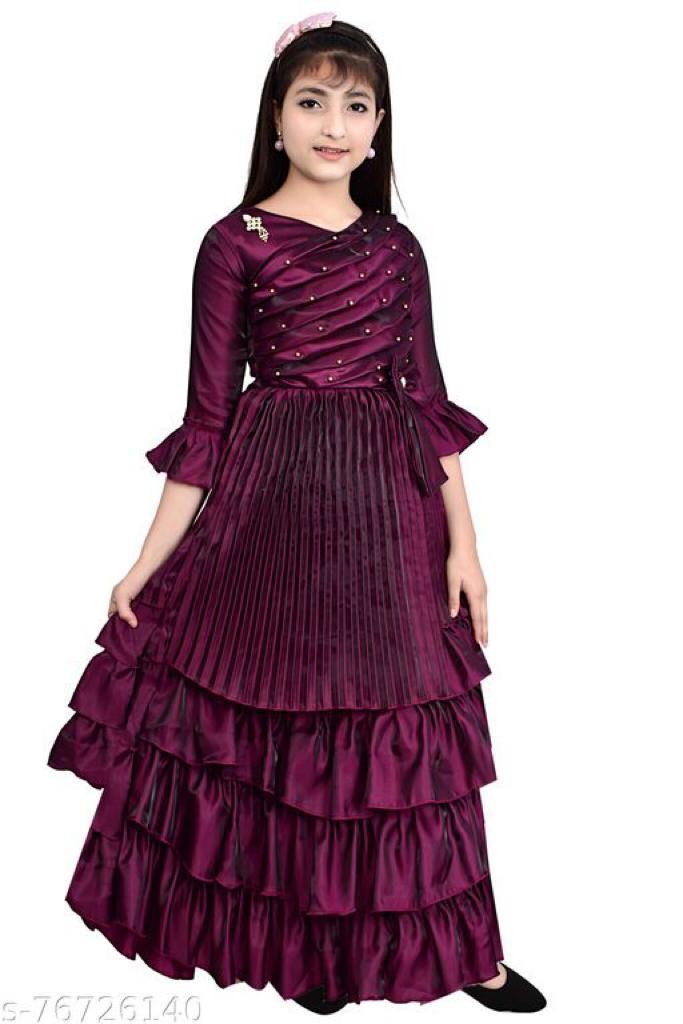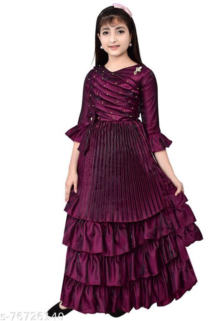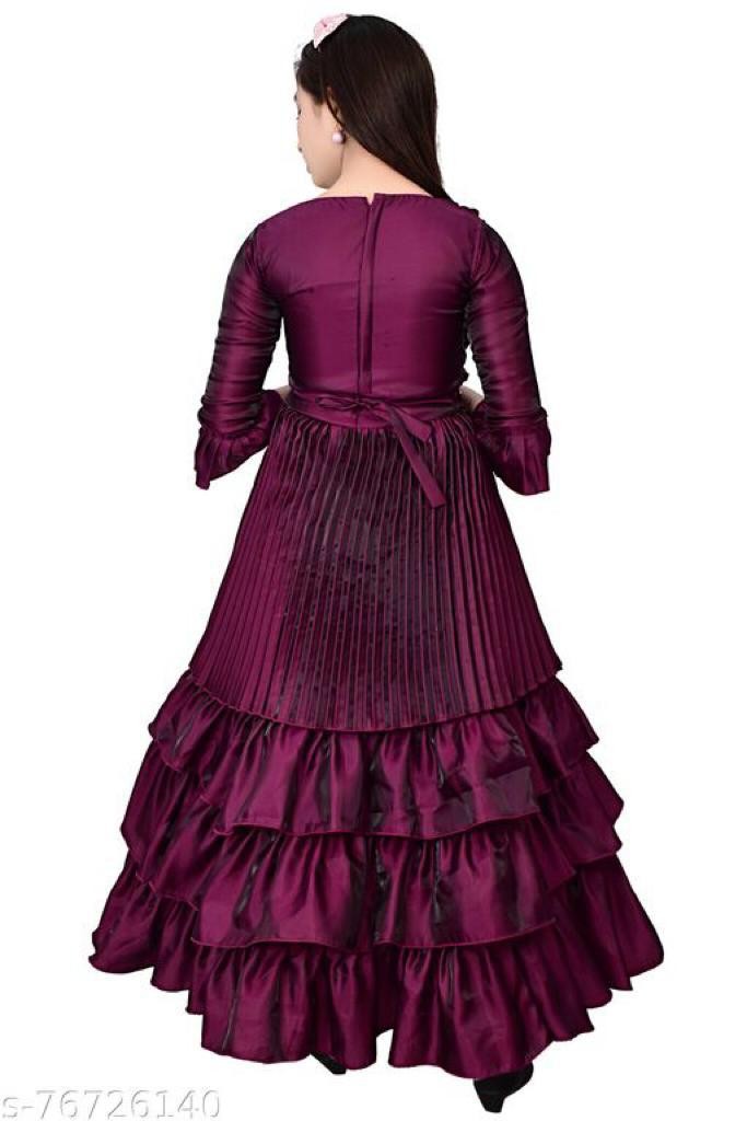 Girl's Blackberry Silk Long Frill Gown Dress Pack Of 1 ( Purple )