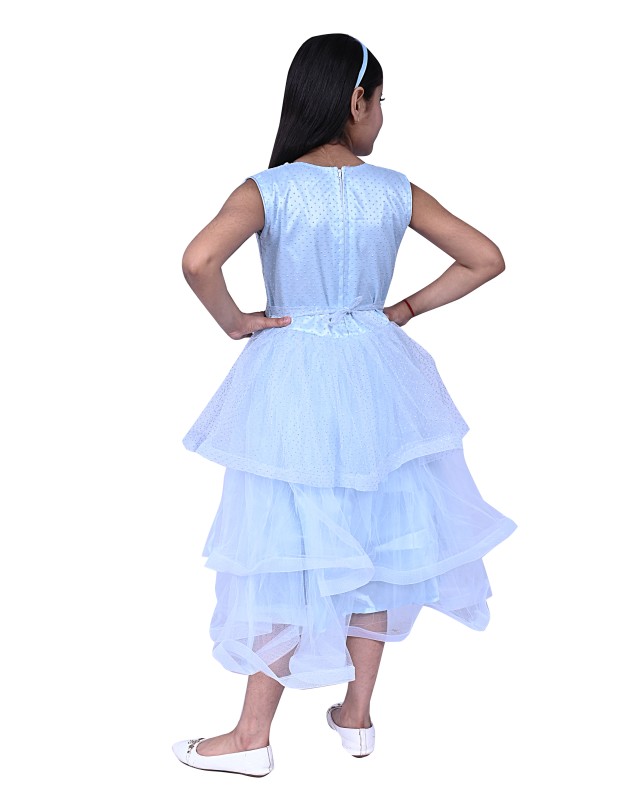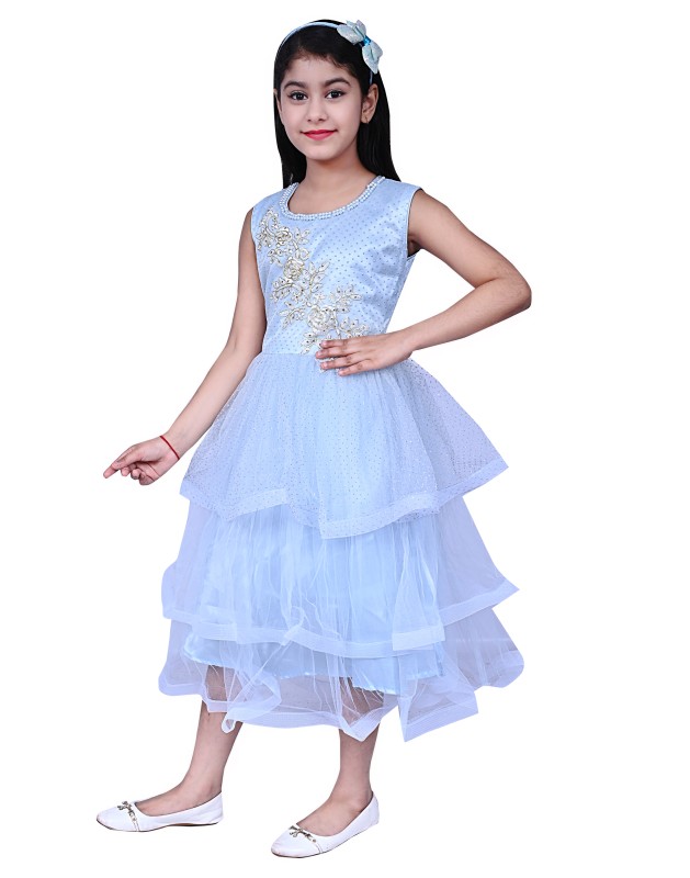 Girl's Net Patch Long Maxi Gown Dress Pack Of 1 ( Light Blue )