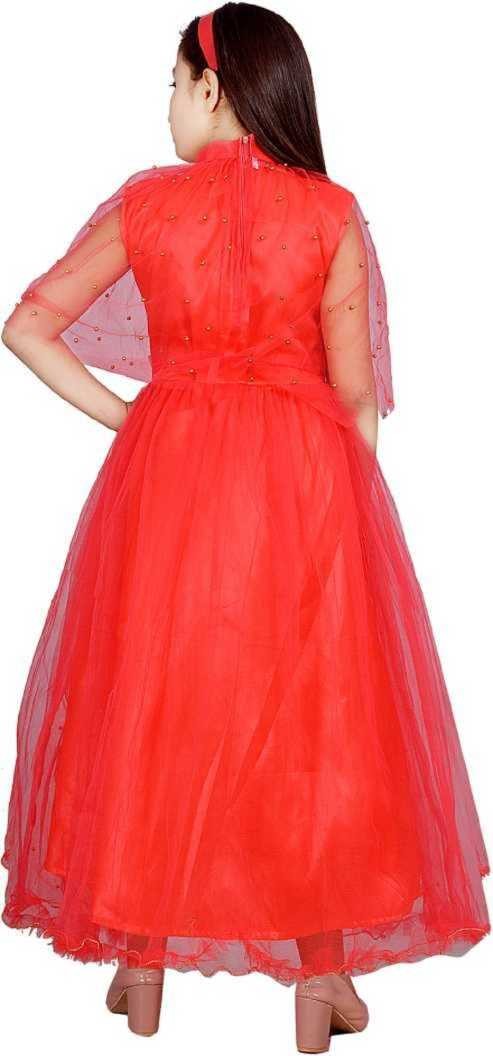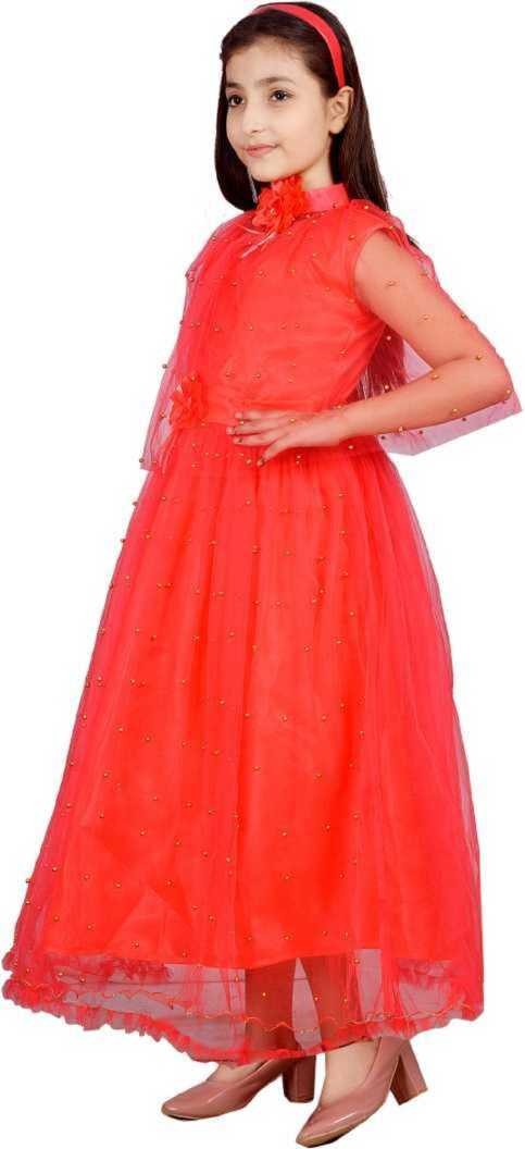 Girl's Pochu Style Net Blend Long Gown Dress Pack Of 1 ( Gajri )