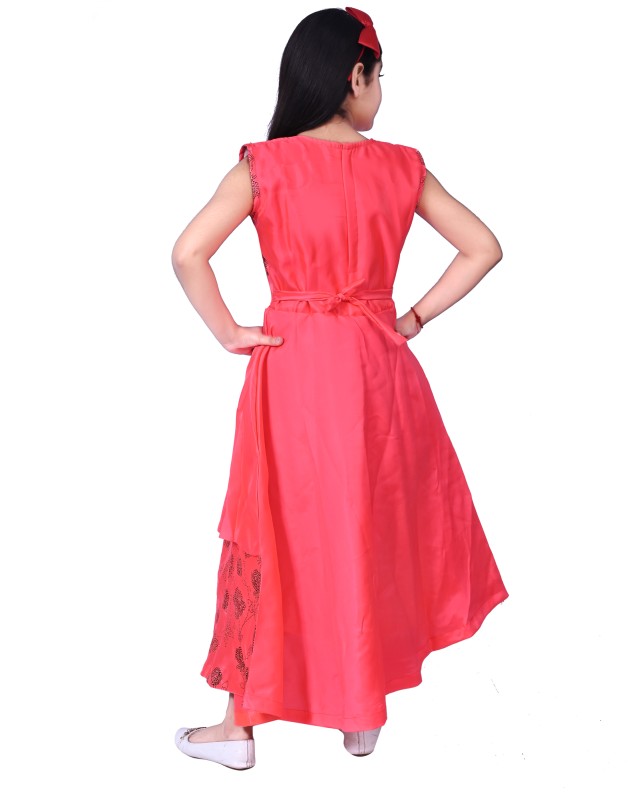 Girl's Printed Long Maxi Gown Dress Pack Of 1 ( Gajri )