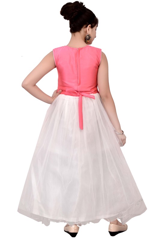 Girl's Sleeveless Long Maxi Soft Net Gown Dress Pack Of 1 ( Pink )