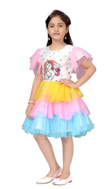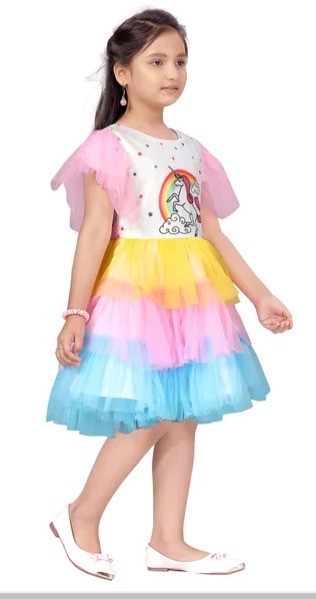 Girl's Unicorn Print Knee Length Soft Net Frocks