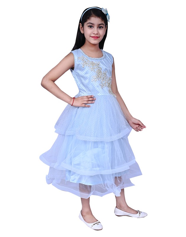 Girl's Net Patch Long Maxi Gown Dress Pack Of 1 ( Light Blue )
